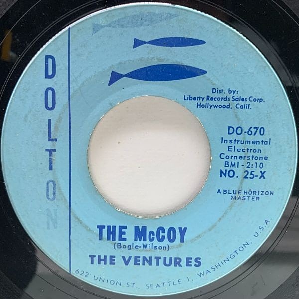 エレキブームを巻き起こしたガレージ・サーフ・ロックの火付け役、ザ・ベンチャーズの'60年発表7インチです。『急がば廻れ』との邦題が冠された全米2位のヒット・ナンバー "Walk -- Don't Run"、ブルー・ホライズンからリリースされたデビュー曲の別バージョン "The McCoy" をカップリング。