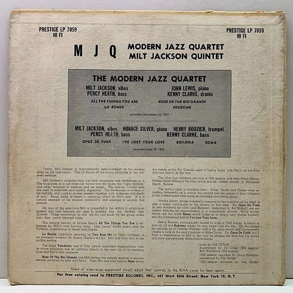 前半の4曲はコニー・ケイの前任=ケニー・クラーク(ds)が参加していた頃の初期MJQの初レコーディング。後半の4曲はピアニストにホレス・シルヴァーを迎え、ヘンリー・ブージアーなるトランペッターも加えた編成で贈るミルト・ジャクソンの'54年リーダー・セッションそれぞれの10インチをカップリングした好盤。12"LPフォーマットのオリジナルです。