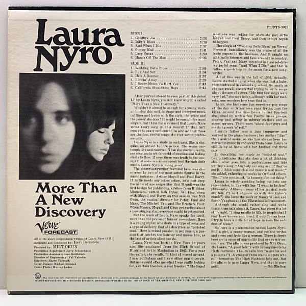 ニューヨーク出身の女性シンガーソングライター、ローラ・ニーロが弱冠19才の時に吹き込んだデビュー作品。ヒット曲 "Wedding Bell Blues" ほか、極上のメロウフォーク "Billy's Blues"、"Buy And Sell" 等を収録した名盤です。