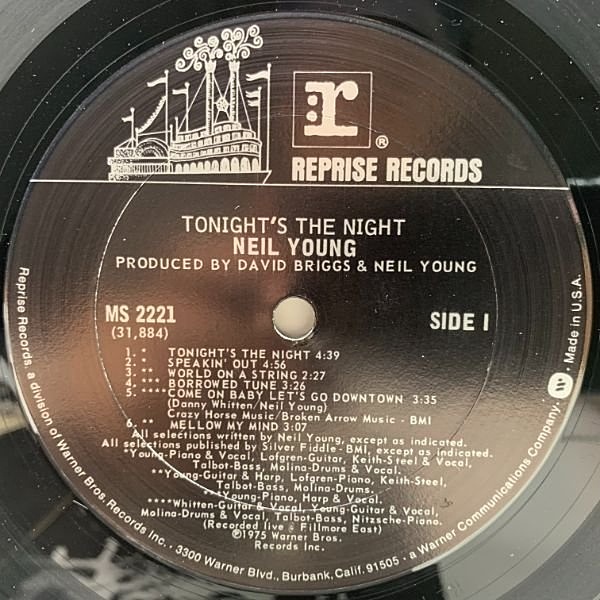 良好!! 初版 黒ツヤ 粗ざらジャケ USオリジナル NEIL YOUNG Tonight's The Night ('75 Reprise) ニール・ヤング 今宵その夜 米 初回プレス