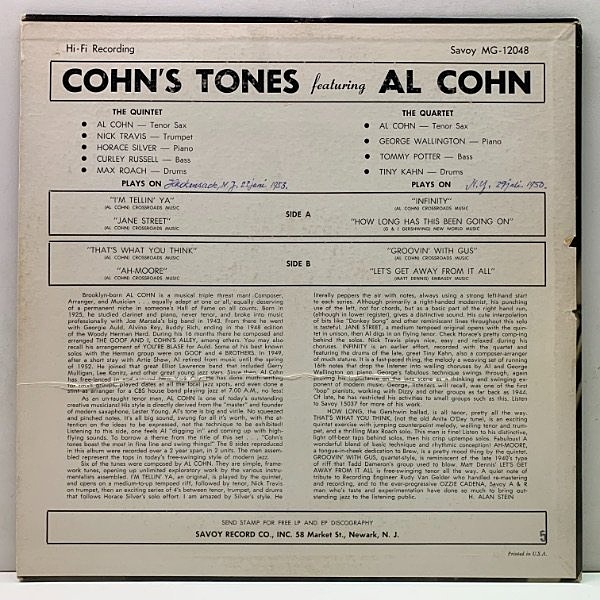QUINTET : AL COHN(ts) NICK TRAVIS(tp) HORACE SILVER(p) CURLEY RUSSELL(b) MAX ROACH(ds)