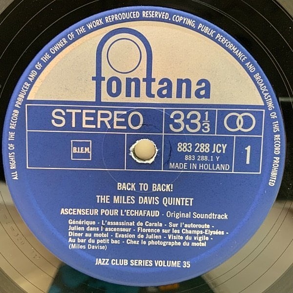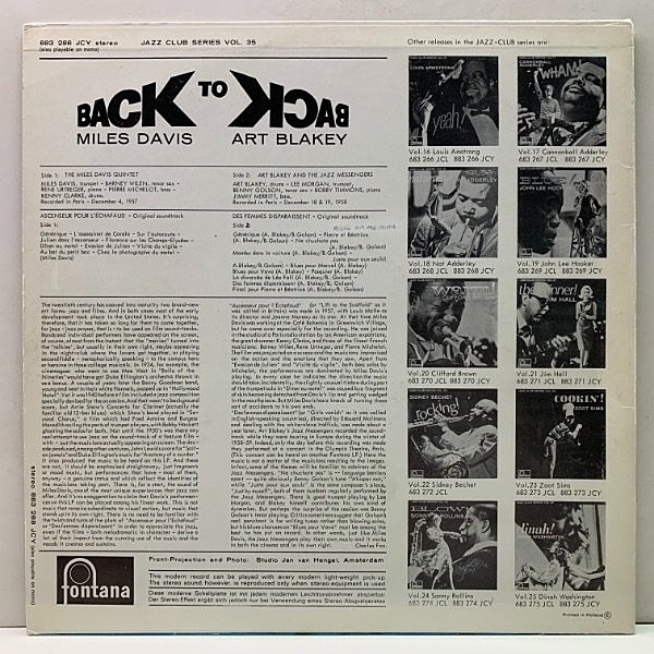 良好!! '66年 蘭プレス MILES DAVIS, ART BLAKEY Back To Back (Fontana) 仏シネジャズ 金字塔 2作 死刑台のエレベーター・殺られる