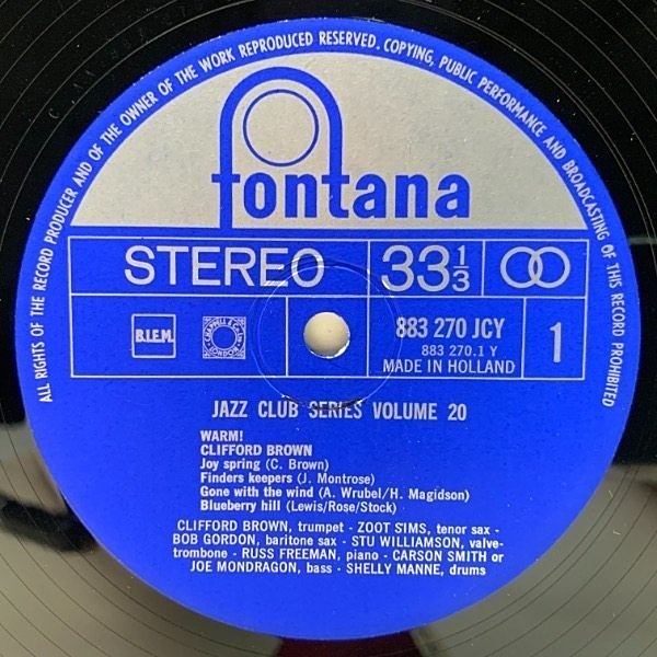 Clifford Brown(tp) Zoot Sims(ts) Stu Williamson(tb) Bob Gordon(bs) Russ Freeman(p) Carson Smith, Joe Mondragon(b) Shelly Manne(ds)
