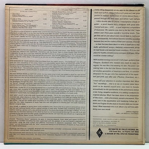 あのフィル・スペクターが主宰したレーベルPhillesの傍系ジャズレーベルとして発足されるもコレ1枚?という極短命で終わってしまったEmeraldからのレアな一枚です。自身にとって初のライブ録音となるLA『P.J.'s』での一夜を記録したジャズギターファン垂涎の傑作。