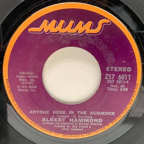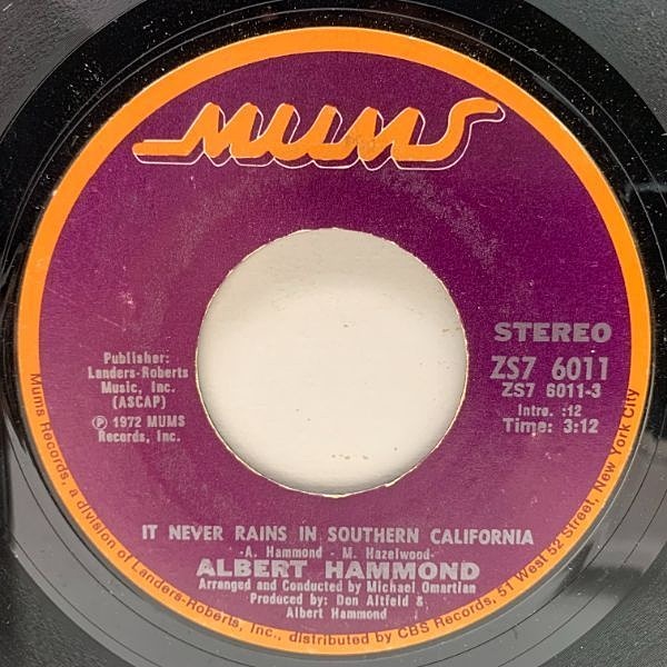 英国SSW、アルバート・ハモンドのシングル。日本では南沙織がカヴァーしたことでも知られるヒットナンバー "カリフォルニアの青い空/It Never Rains In Southern California" を収録。