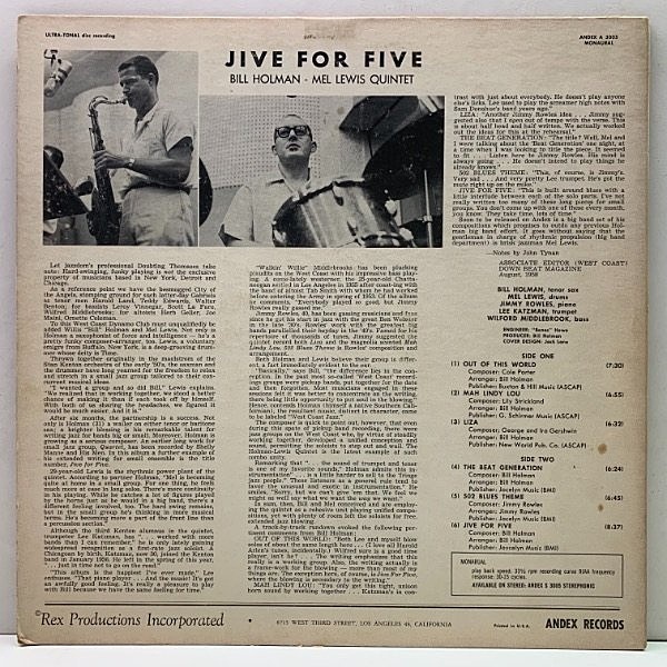 カミューカとの双頭リーダー作『Jazz Erotica』でも知られるスタン・ケントン楽団の名アレンジャー/サックス奏者のビル・ホルマンと、ウエスト・コースト屈指のドラマー、メル・ルイスとの双頭コンボによる'58年録音。ホルマンによる二管編成を活かした秀逸なアレンジと、ウエスト・コースターズらしいドライブ感あふれるアンサンブルが素晴らしい通好みの隠れた名盤です。マイナー・レーベル故、この辺は中々見つかりません。