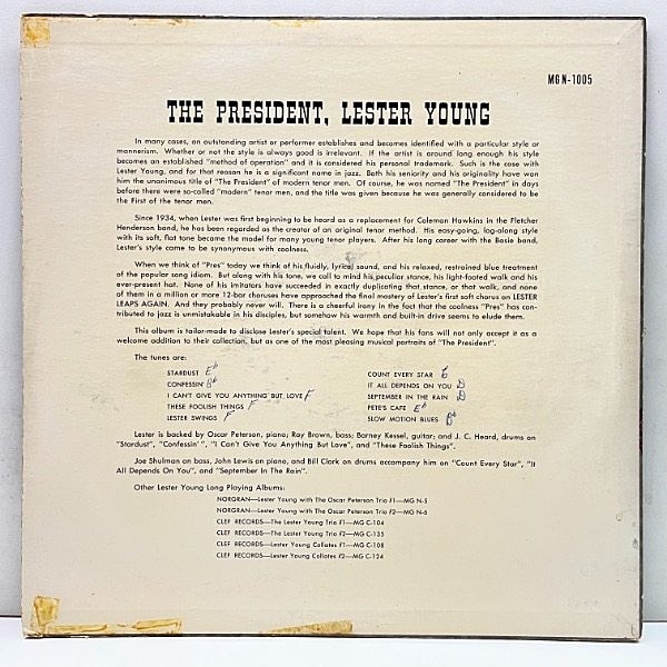 '56年にジャケ差し替えでリリースされた『MGN 1093 - Lester Swings Again』は後発で、こちらの盤は厳密には準オリジナルの極初期のプレスになります。
