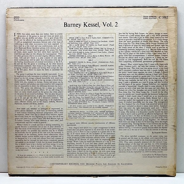 コチラは10"[C2514]に加え、ハンプトン・ホーズ、レッド・ミッチェル、チャック・トンプソンらとのサイドを入れ替えたセッション4曲(A5, A6, B4, B5)を追加した12"LPの原盤です。