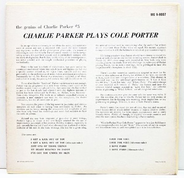 ウォルター・ビショップJr.、ロイ・ヘインズらとのクインテット編成で、コール・ポーターの名曲群を朗々とブロウする最晩年の'54年録音を記録したチャーリー・パーカー最後のスタジオレコーディングです。パーカーは本作のリリースを前に他界してしまったというのも感慨深い。
