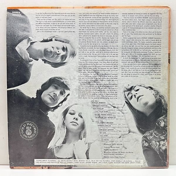西海岸のフラワームーヴメントを象徴するバンド、ママス&パパスを代表する名曲 "夢のカリフォルニア" を収録した記念すべきデビュー・アルバム!!