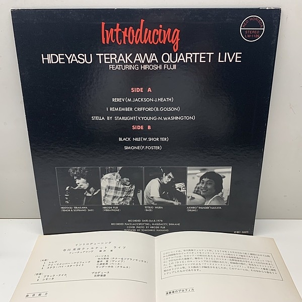 自主制作100枚限定、地元のレコード屋とライブ会場で手売りのみ、現在はリーダーもレーベルも消息不明か?!と謳われていた幻の和ジャズ『HIDEYASU TERAKAWA QUARTET - Live』の大変貴重なオリジナルです。