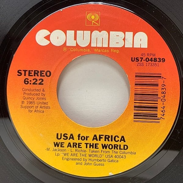 全英のオールスターが集結したチャリティー・プロジェクト=バンド・エイドの成功に触発された形で、エチオピアの貧困を助けるために結成されたアメリカ版の同様プロジェクト。ライオネル・リッチー、マイケル・ジャクソン、スティーヴィー・ワンダー、クインシー・ジョーンズら数々の大物アーティストの参加は総勢45人!マイケル&ライオネルの共作による各国でチャート1位を記録した "We Are The World" 収録7インチ。