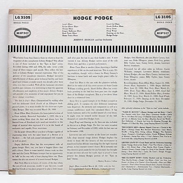 御大エリントンも参加したジョニー・ホッジス・バンド初期の傑作集です。