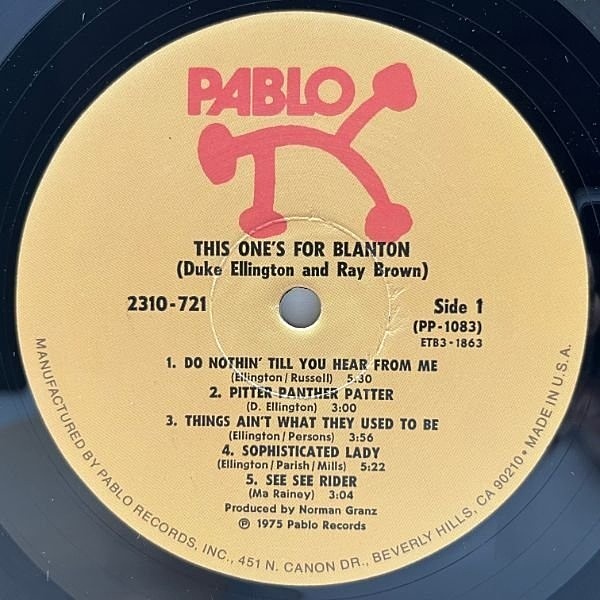 1940年代の初期に於ける前期デューク・エリントン楽団黄金期の立役者である夭折の名ベーシスト、ジミー・ブラントンに捧げたエリントン&ブラウンによるデュオ作品。エリントンの奔放なピアノに呼応する様なベースとの相乗した掛け合いはお見事です。音質にも定評があり、オーディオマニアからも支持のある逸品で、Pabloの中でも特に人気の高いレーベル屈指の名盤です。
