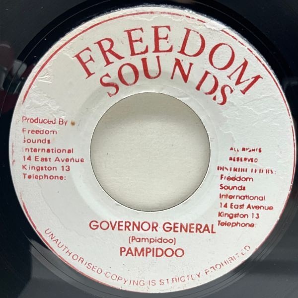 '83年初頭からキラマンジャロ・サウンドシステムでキャリアを開始させたというオブスキュアディージェイ、パンピドゥーのシングル。リバーブの妙が効いたトラックに超絶ルーディーなダミ声が早口で炸裂する混沌ダンスホールナンバー "The Governor General" 収録!!