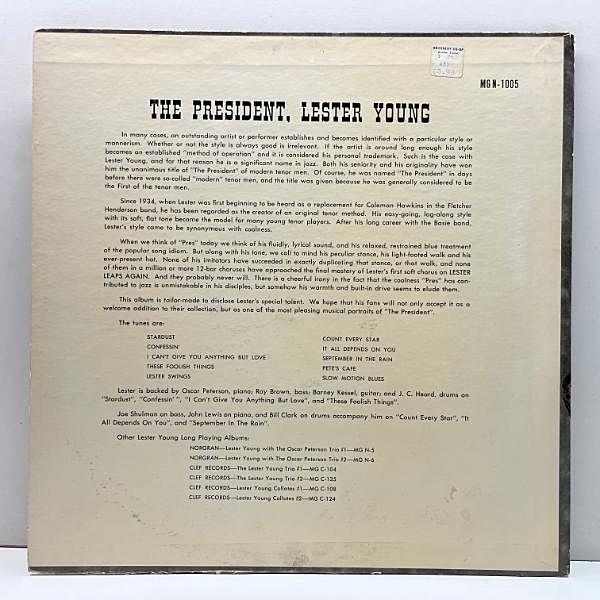 '56年にジャケ差し替えでリリースされた『MGN 1093 - Lester Swings Again』は後発で、本品はNORGRAN SALES CORP.リムですので厳密には準オリジナルの扱いになりますが、コレくらい良好な盤質は滅多に出て来ません。