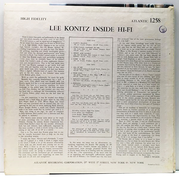 Lee Konitz(as/ts) Sal Mosca(p) Billy Bauer(g) Arnold Fishkind, Peter Ind(b) Dick Scott(ds)
