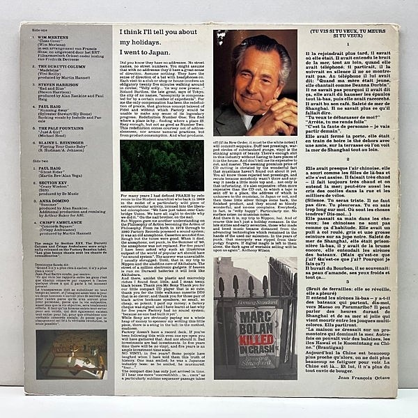 特筆しておきたいのはアラン・ベガによるシンセパンクデュオSUICIDEの名曲を乱痴気ネオロカカヴァーしたPAUL HAIGの "Ghost Rider" 、そのほかDURUTTI COLUMNによるダウナーなムード漂うボッサ風ラウンジ "Madeleine"、PALE FOUNTAINSによる極上のネオアコラウンジ "Just A Girl"、CRISPY AMBULANCEによるJOY DIVISION風の荒削りゴスパンクから後半インダストリアルダークアンビエントに展開する "Concorde Square" など収録。'80年代のアートロックシーンの一端が垣間見える貴重な好コンピです。
