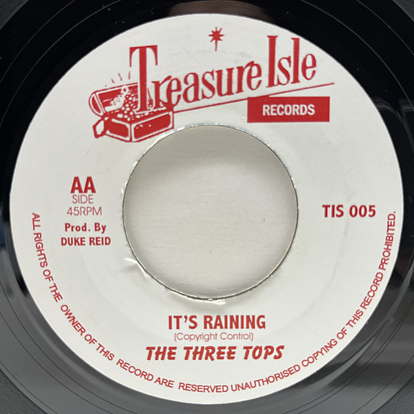 5人組編成でそのキャリアをスタートさせたヴォーカルグループ、ジャマイカンズとジミー・ライリーも在籍したトリオ、スリー・トップスによるロックステディ名曲カップリング7インチ。イントロの野太い芯のドラミングと激シブの低音から最高でメロメロの多幸感へと流れ込む "Things You Say You Love" 、イントロで会話掛け合いパートが挿入される(レゲエでは珍しい演出!)名曲 "It's Raining" 収録!!