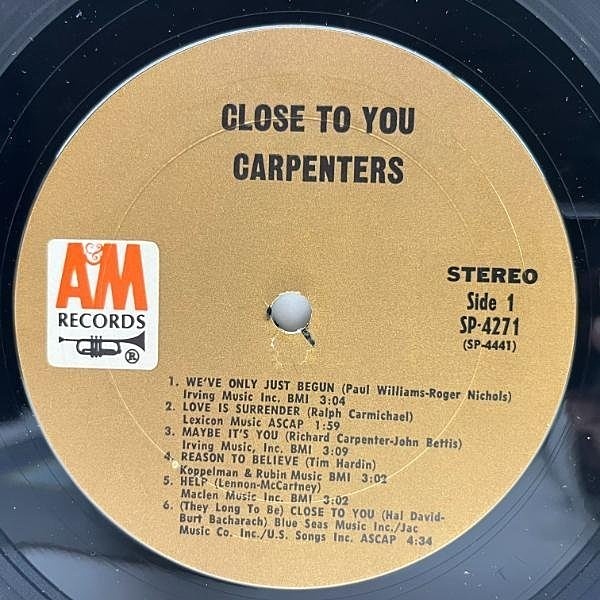 ほぼ美盤!! USオリジナル 初版 茶ラベ CARPENTERS Close To You ('70 A&M) カーペンターズ 米 初回プレス 遥かなる影, 愛のプレリュード