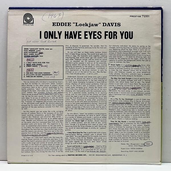 良好!! MONO NJ 深溝 RVG刻印 USオリジナル EDDIE Lockjaw DAVIS With PAUL WEEDEN (Prestige 7261) w/ Don Patterson, George Duvivier