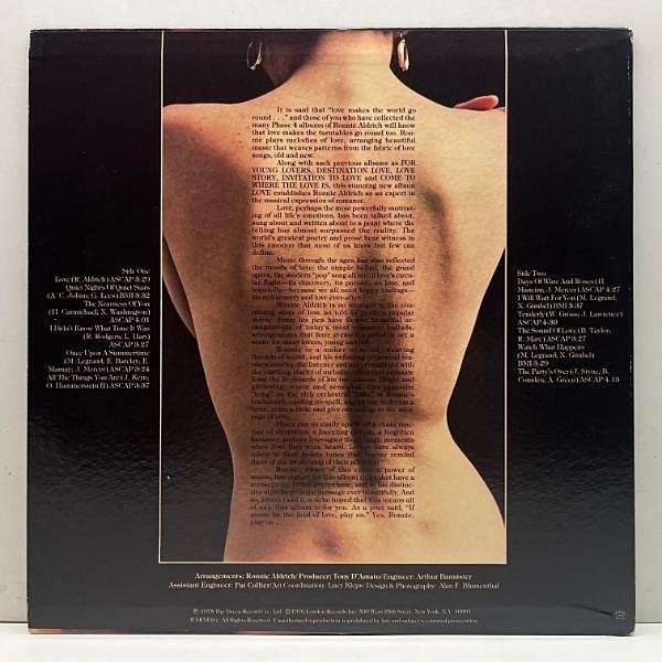 イギリスのイージーリスニング/ジャズのピアニスト兼指揮者であるロニー・アルドリッチ。デッカ・レコーディングスタジオ専属オーケストラを引き連れて発表した'75年発表アルバム。セクシーな美女ジャケともにマイルド濃厚な至福のラウンジポップ/イージーリスニングを全12曲収録!!当時のハイファイ・オーディオ・ブームに便乗した「PHASE 4 STEREO」高音質カッティングシリーズで滑らかでクリアな高音も堪能できます。