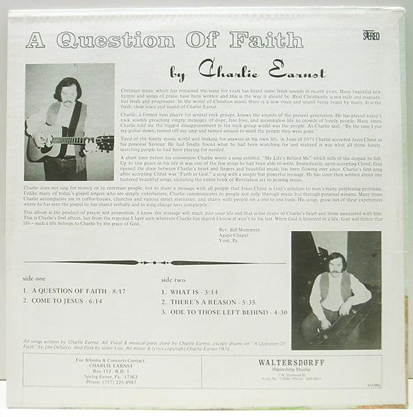 米国ペンシルヴァニア州の田舎町YORKで吹き込まれたシンガー・ソング・ライター、チャーリー・アーンストの'74年自主制作盤。