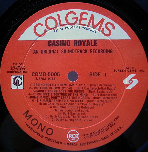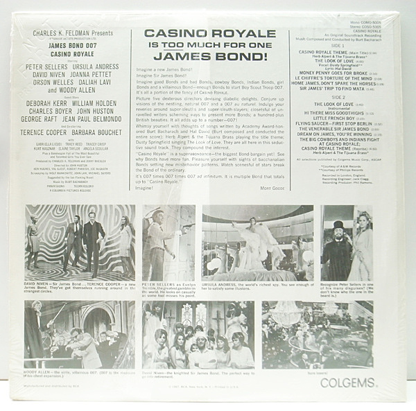 バート・バカラックが音楽を担当した'67年公開の映画『007/カジノ・ロワイヤル』のサントラ盤。