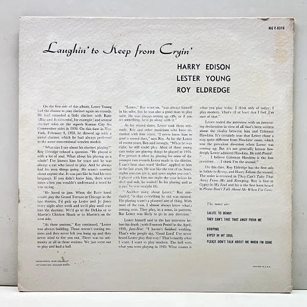 プレスの絞り出すような味わいは滋味深く、ジャケットから想像できるようなリラックスした雰囲気も然る事乍らロイ・エルドリッジとハリー・エディソンという二人の名トランペッターを含む魅力たっぷりのサポートも素晴らしい。