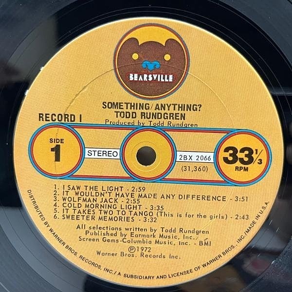 良好!!【Rロゴ無し・SUBSIDIARYリム】USオリジナル TODD RUNDGREN Something Anything ('72 Bearsville) I Saw The Light, Hello It's Me