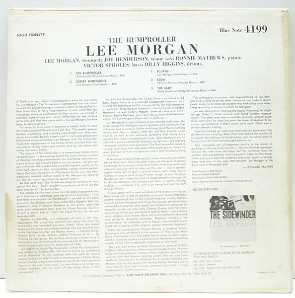 レコードメイン画像:美再生!良盤! MONO 1st. NEWYORK VANGELDER刻印 USオリジナル LEE MORGAN The Rumproller (Blue Note BLP 4199) 耳マークあり モノラル LP