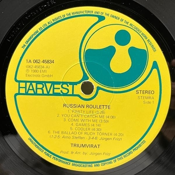 美盤!! NETHERLANDS オリジナル TRIUMVIRAT Russian Roulette ('80 Harvest) German Progressive Rock w/ JEFF PORCARO, STEVE LUKATHER