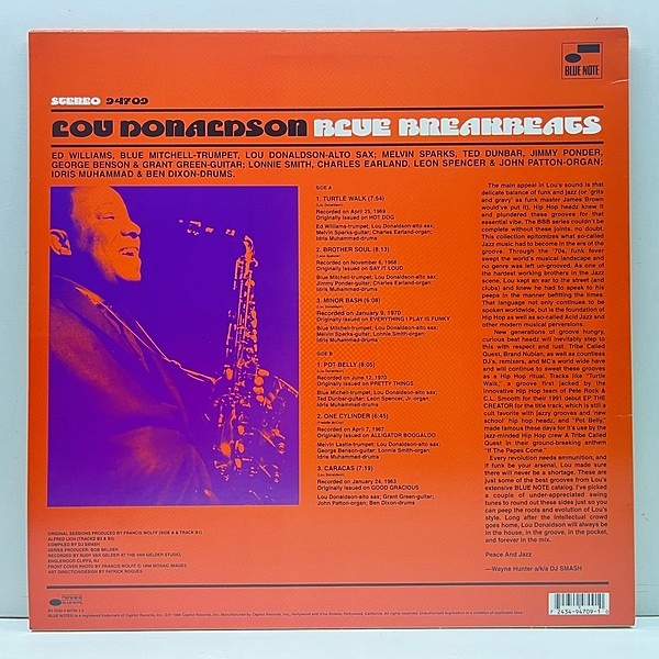 今回はお馴染み、ソウルジャズを代表するルー・ドナルドソンを特集。PETE ROCK & C.L. SMOOTH/All Souled Outネタの "Turtle Walk"、DR. DRE/Rat-Tat-Tat-Tatネタの "Pot Belly" などDJ〜サンプリング用に最適な楽曲を全6曲収録。