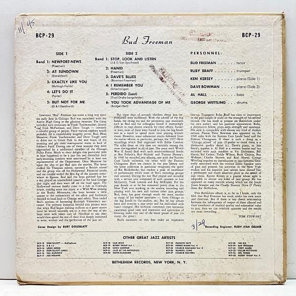 Bud Freeman(ts) Ruby Braff(tp) Dave Bowman, Ken Kersey(p) Al Hall(b) George Wettling(ds)