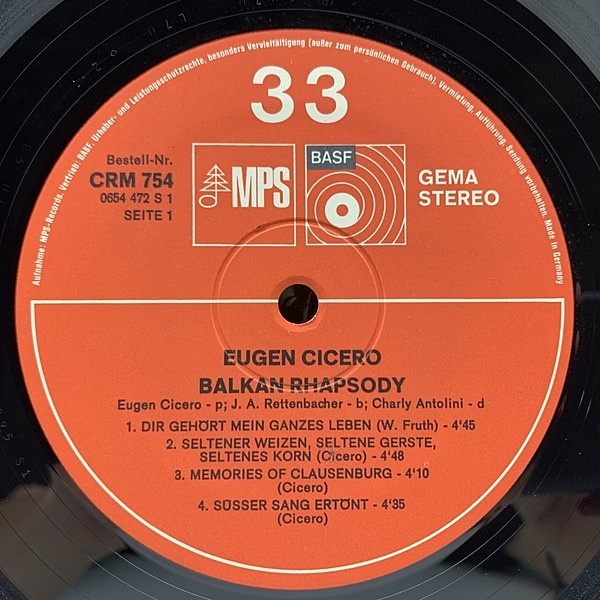 後にクラシック音楽のジャズ化で成功を収めたルーマニア出身のピアニスト、オイゲン・キケロのトリオもの。バルカン半島を意識した郷愁のメロディを華麗に謳いあげたエレガントなサウンド。軽快なスウィング〜バラード〜ジャズボッサまで特異な感性が光っています。