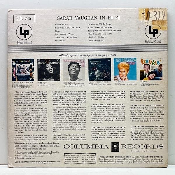 8曲でオリジナル・クインテット編成前となる初期のマイルスも参加しており、全編でジャジーなスモールコンボと相まったピュアなジャズヴォーカルを満喫できるサラ・ヴォーンの隠れた名盤です。コチラは10インチから4曲(A3, A4, B3, B4)追加した12"LPのオリジナル。