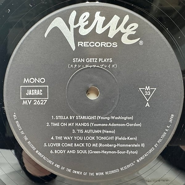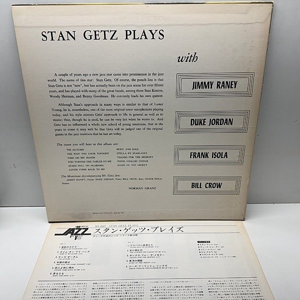 美盤!!【MONO】STAN GETZ Plays ~ The Artistry Of (Verve MV 2627) スタン・ゲッツ絶頂期の録音 w/ DUKE JORDAN, JIMMY RANEY
