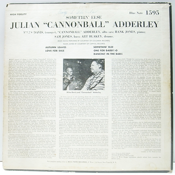 CANNONBALL ADDERLEY(as) MILES DAVIS(tp) HANK JONES(p) SAM JONES(b) ART BLAKEY(ds)