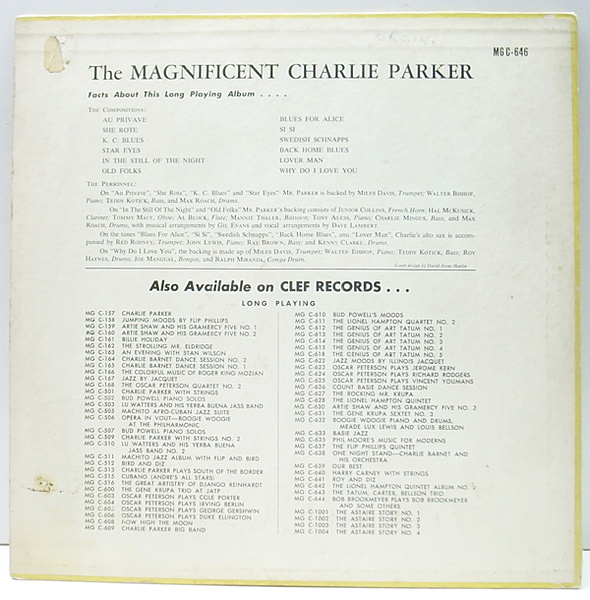 Charlie Parker(as) Miles Davis, Red Rodney(tp) Hal McKusick(cl) John Lewis, Walter Bishop(p) Charlie Mingus, Ray Brown, Teddy Kotick(b) Kenny Clarke, Max Roach, Roy Haynes(ds) etc / David Stone Martin(cover)