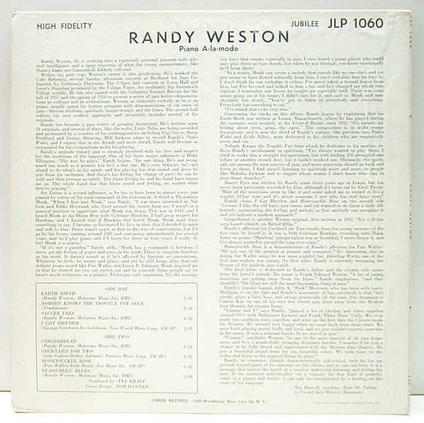 Randy Weston(p) John A. "Peck" Morrison(b) Connie Kay(ds)