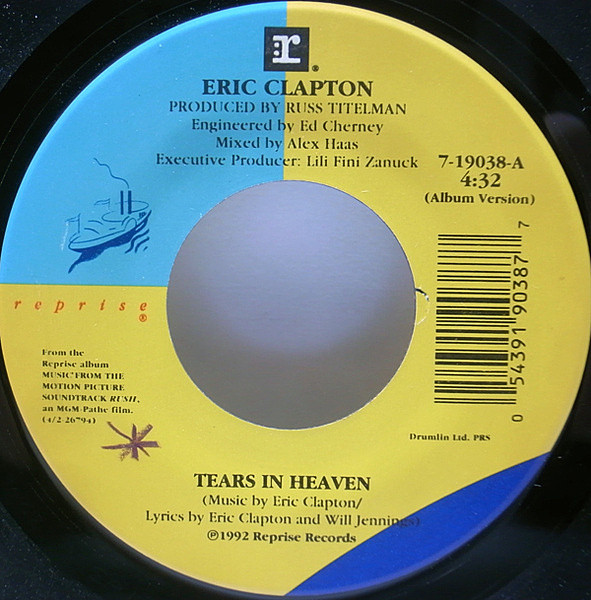 7インチ USオリジナル ERIC CLAPTON Tears In Heaven ('92 Reprise) 息子コナーの追悼ソング/グラミー最優秀の名曲 45RPM.