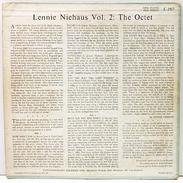 Lennie Niehaus(as) Stu Williamson(tp) Bob Enevoldsen(v-tb) Bob Gordon(bs) Jack Montrose(ts) Lou Levy(p) Monty Budwig(b) Shelly Manne(ds)