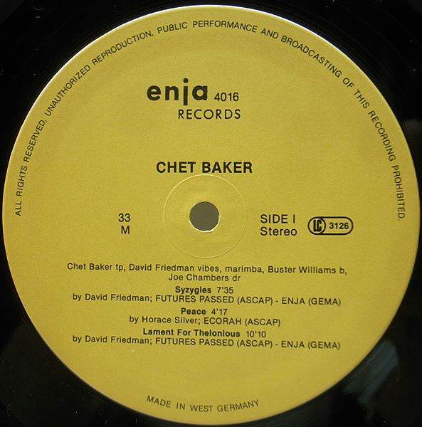 チェット・ベイカーが晩年に残した独Enjaでの第一弾です。
