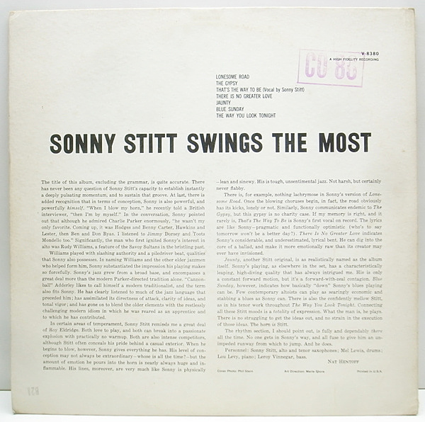 SONNY STITT(as/ts) LOU LEVY(p) LEROY VINNEGAR(b) MEL LEWIS(ds)