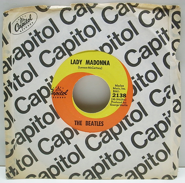 現在に至るまでポール・マッカートニーの愛奏曲となった名曲 "Lady Madonna"、インド音楽も取り入れたサイケな "The Inner Light" をカップリングした7インチ。