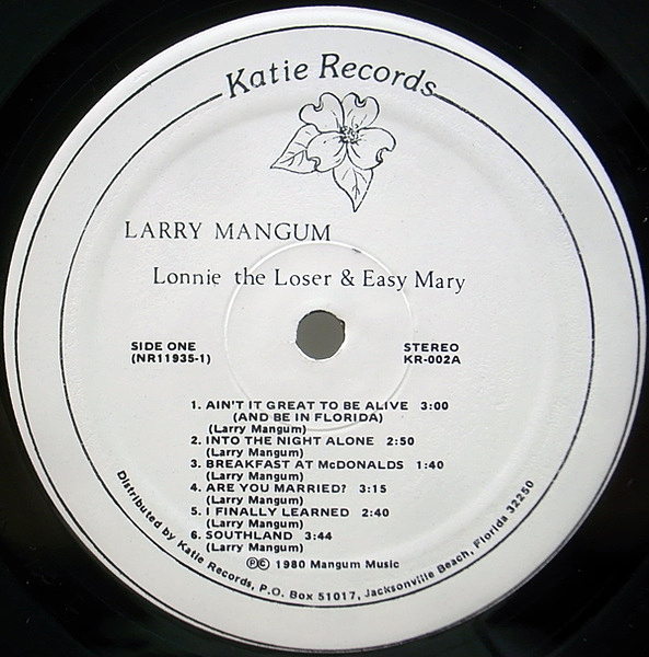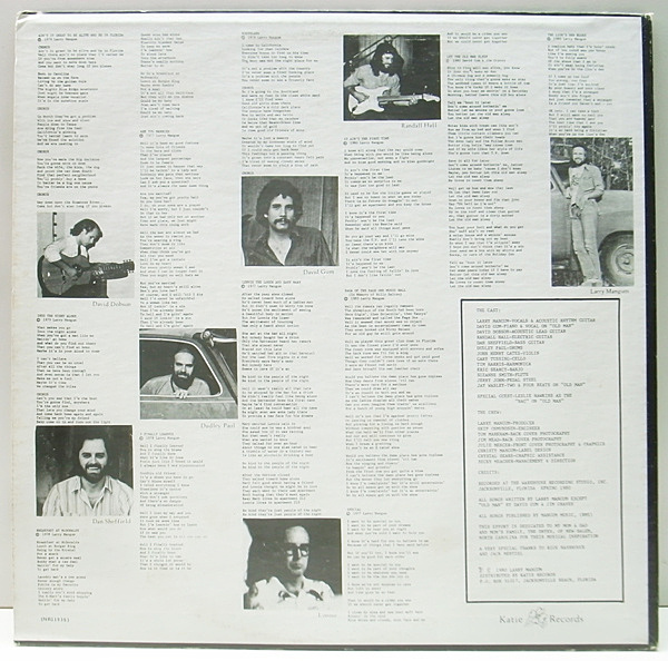 LARRY MANGUMなるシンガー・ソングライターが、フロリダのローカルレーベルに残した非常に珍しいプライヴェートSSWもの。