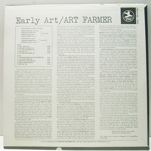 帰米直後の2つのセッション (ウィントン・ケリーが参加したファーマーのワンホーン・カルテット&ロリンズを含むクインテット) を記録した初期の名作です。『NEW JAZZ NJ 8258』の後発となる'73年プレスです。