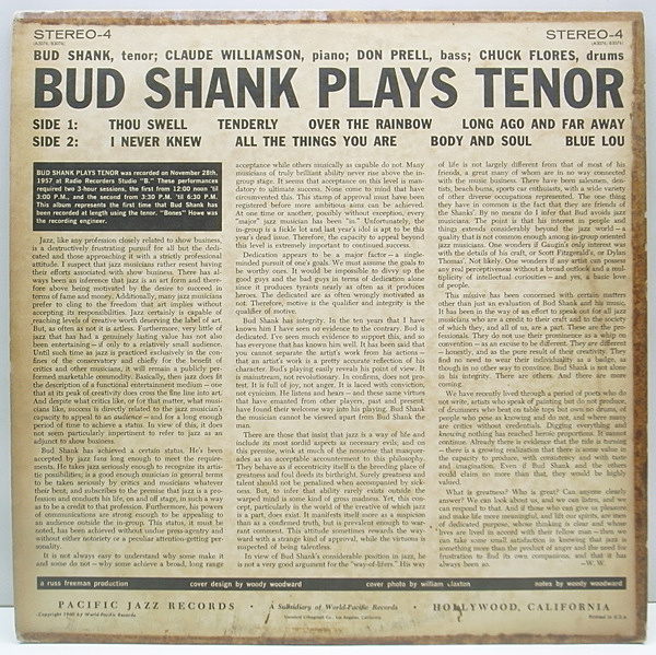 BUD SHANK(ts) CLAUDE WILLIAMSON(p) DON PRELL(b) CHUCK FLORES(ds)