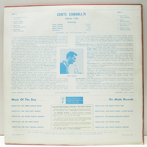 レコードメイン画像:美品 MONO 1st GRAY 深溝 USオリジナル CONTE CANDOLI QUARTET ('57 Mode 109) PAT#刻印あり Vince Guaraldi, Monty Budwig, Stan Levey