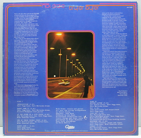 26歳の若さで夭折した英SSW、ニック・ドレイクが'70年に発表した2ND ALBUM。